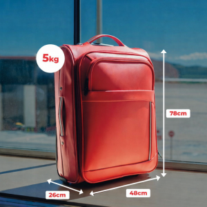 - Visando não causar riscos ou danos no momento do embarque/desembarque, a bagagem precisa ter as medidas máximas de 26 cm de profundidade, 78 cm de largura e 48 cm de altura.
