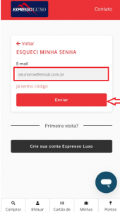 Na próxima tela, você deve informar o e-mail cadastrado para receber o link de alteração de senha e clicar em enviar.