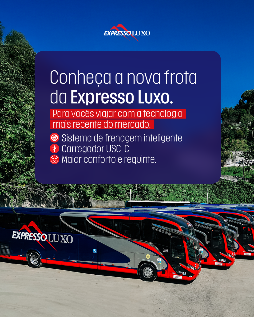 Em mais um importante passo rumo à excelência no transporte rodoviário de passageiros, a empresa Expresso Luxo anuncia a aquisição de novos ônibus equipados com o que há de mais avançado em tecnologia de segurança e conforto. Os novos modelos contam com o completo Pacote de Segurança da Mercedes-Benz, reafirmando o compromisso das empresas com a integridade e o bem-estar de seus clientes em cada viagem.